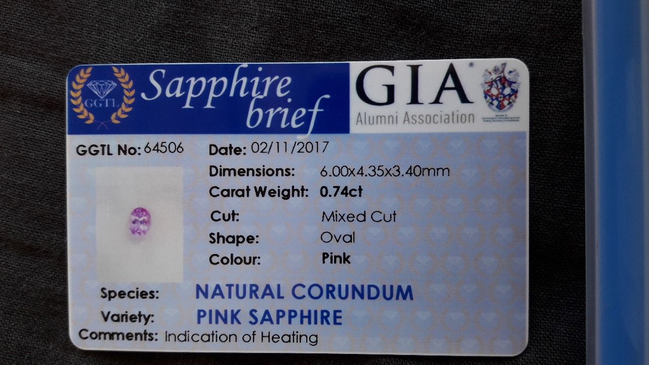 | GEMSTONE APPRAISAL / EVALUATION: | Based on its impressive qualities, this vivid pink sapphire has a Fair Market Value Appraisal estimated at approximately USD 350 to 450. Its eye-clean clarity, strong saturation, and premium handcrafted oval cut contribute to its appeal, making it a desirable gemstone in the market. Considering its 0.74-carat size and vibrant color, this Sri Lanka Ceylon sapphire may not serve as a robust investment asset when compared to larger gemstones in the high-end market. However, it fits beautifully in personal collections or as a unique piece of jewelry, ideal for special occasions or as a thoughtful gift, where its beauty and rarity can be appreciated without the pressures of the investment market. |