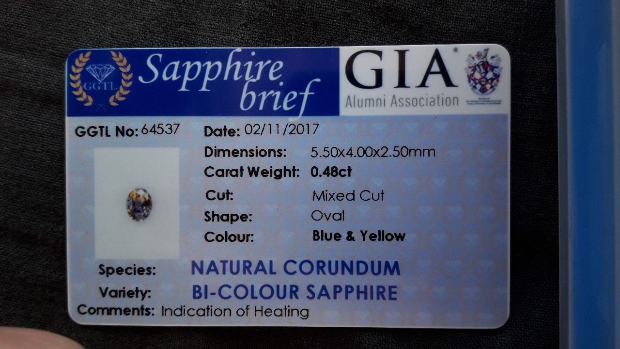 | GEMSTONE APPRAISAL / EVALUATION: | Based on the characteristics of this bi-color blue-yellow Ceylon Sapphire, including its premium handcrafted oval cut, eye-clean clarity, strong saturation, and unheated status, this gemstone holds a Fair Market Value of approximately USD 150 to USD 200. Its certification by a GIA Alumni Laboratory further validates its quality and appeals to collectors and investors alike. While this Sri Lankan Ceylon Sapphire can be an attractive piece within a personal jewelry collection or for aesthetic enjoyment, its smaller carat size of 0.48 may limit its potential as a strong long-term investment. Instead of viewing it purely as a financial asset, consider positioning it as a unique statement jewelry piece, enhancing personal style or as a meaningful gift that carries both beauty and sentimental value. |